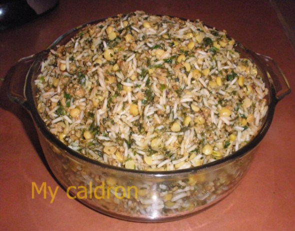 Rinse rice and split peas. Place them in two medium pots and add one cup of water in each pot, in addition to a pinch of salt and cook on medium heat until water is absorbed. Cooking them separately ensures they are both cooked at core without either of them becoming mushy; they might have different cooking times.