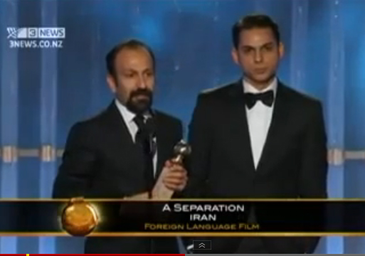 “A Separation” made by the Iranian film maker Asghar Farhadi wins Best Foreign Language film at 2012 Golden Globe. Watch it here. This recognition comes after several other awards throughout the world including Best Screen Play NBC Los Angeles, and Berlin Festival