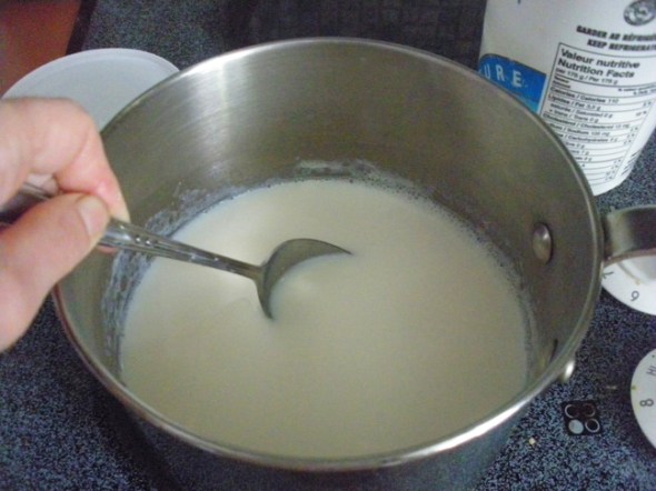 Heat the milk. Pour milk in the pot and warm it over medium to low heat (without much stirring) until it gets to a temperature of 185 F (85 C) so that bad bacteria are dead. Here is where a thermometer becomes very handy. But don’t worry if you don’t have it. My father used to make yogurt all the time without ever using it and I bet your parents did too! When the bubbles appear on the surface just as it starts to boil it is at required temperature.