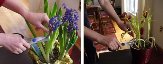 Here in Montreal (zone 5), spring comes to the supermarkets and flower shops way before the official spring, March 21th. I personally find it so hard to resist coming back home from shopping without a pot or two of tulips, narcissus or hyacinth. I need them for my norooz sofreh anyway, and lots of people need them for their Easter or for no particular reason at all! The point is, you can easily preserve this beautiful plants and have them flower next year if you replant them in your garden by following the simple instructions below: