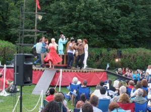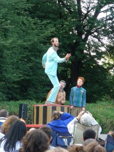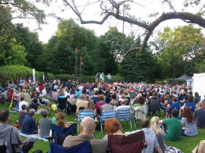 Repercution theater is a people’s theater: a much loved tradition in Montreal, which literary brings Shakespeare to about twenty parks through the city over three weeks in late July/early August.  As the company’s website reads, the theater’s mission is “[T]o deliver professional, classically based, visually dynamic theater that is accessible to all, regardless of income, culture, language, age or education… reaching new audiences and inspiring in them, a lifelong love of theater.”