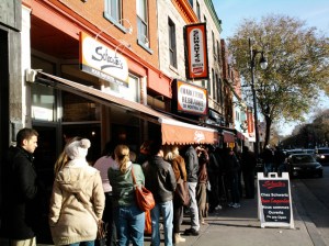You simply cannot miss the deli, as no what matter what time of the year, there is always a lineup in front of it. If you are willing to settle for a take out, you would be waiting less, but having the meal inside the tiny, crowded space is a part of the tradition if you ask me. Also my advise: Go for full or medium-fat smoked meat, the light one just doesn’t taste as rich; you’re not going to have it every single day of the week, so it couldn’t hurt that much! The fries aren’t great, but don’t miss its pickles. They are huge, but heavenly. The pictures below, say “some” of it all!