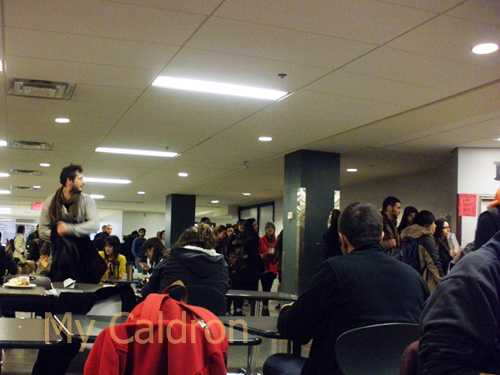 If you are a student, staff or community member living in downtown Montreal, AND you are in need of a free hot soup and green salad, drop by at Chartwells Cafeteria. It takes about an hour of waiting in line though.