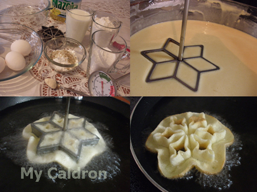 Required Tools: Rosette iron (absolutely necessary). Frying thermometer (very handy, but could do without)