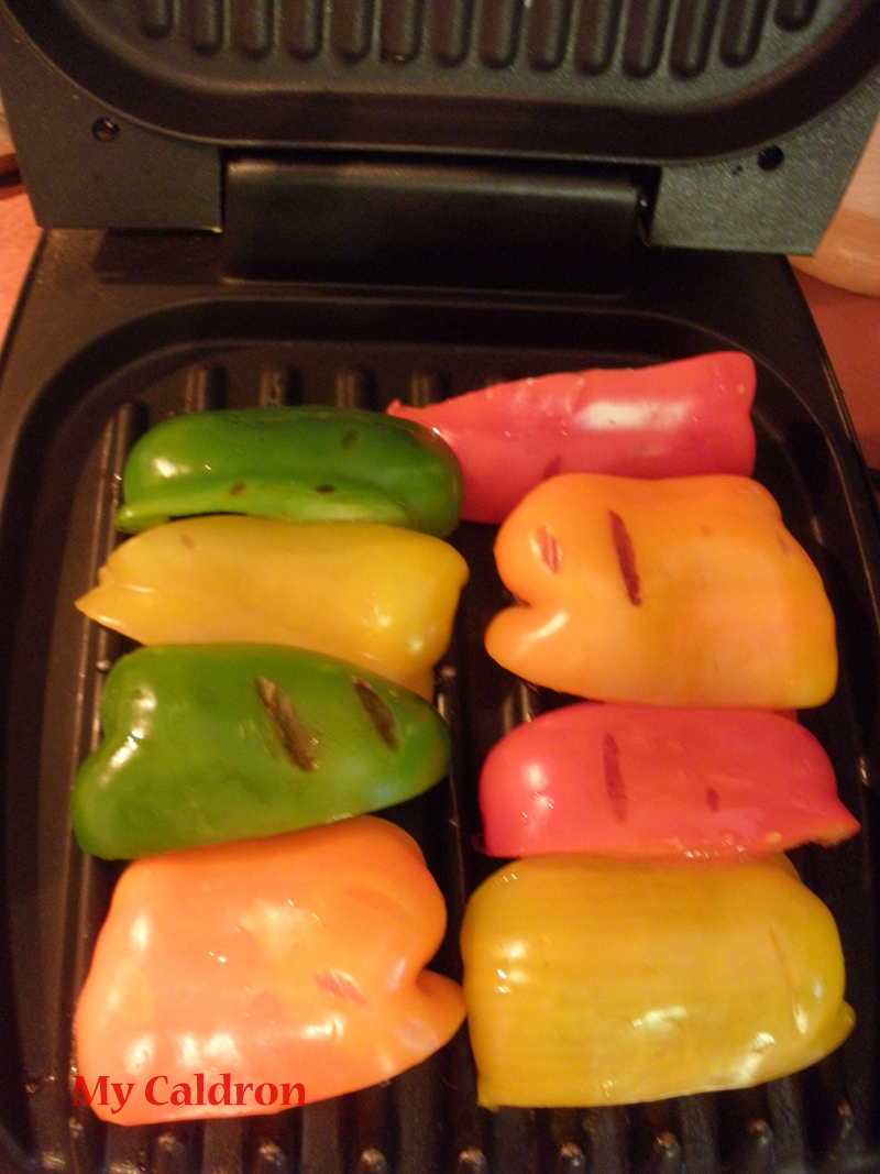 - 4 halves of bell peppers in green, red, orange and yellow, (1 half, each)