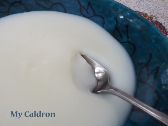 Transfer the cooked and thickened mixture in to a serving bowl and let cool. The cooling process helps further thicken Fereni.