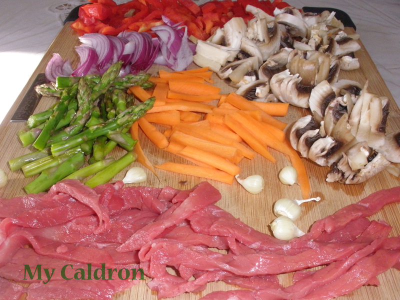 - 400 gr. Lean veal, cut in thin and narrow stripes