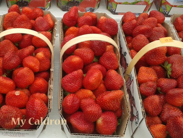 I don’y have a good picture for this step, but will install one the next time I make this cake. Anyway, you should spread the cream over one cake. Spread the jam on top of the cream. Place the second cake on top of the first and gently press. Run back of a spoon around the outside edge of assembled cake to press back in or remove any excess cream/jam. Top the cake with icing sugar and fresh strawberry any way you fancy!