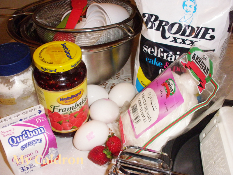 Posted: 28 August 2015 Filed under: Sponge Cake with Strawberry & Cream, Uncategorized | Tags: cream, no-butter, sponge cake, strawberry Leave a commentThis is another tempting recipe I tried from my friend’s blog, Saloomeh’s Kitchen, when I suddenly tumbled over my own cake-baking passion last year! – Sponge Cake layered, cleverly, with strawberry jam and cream. I got it only at the third go, though as it proved to be a delicate cake requiring extra gentle care and attention.