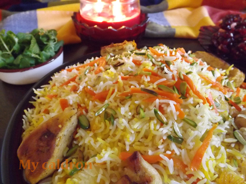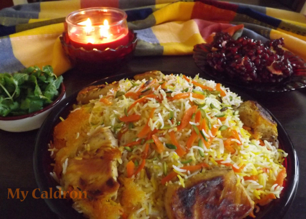 Carrot Mixed Rice, Havij Polow, with Fried Chicken for Yalda Night