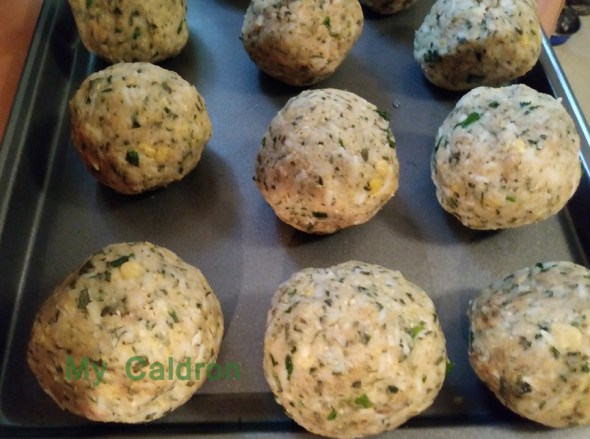 Divide the big mixed meatball into at least eight smaller round balls.