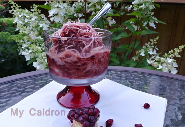 Posted: 10 August 2018 Filed under: Uncategorized | Tags: dessert, Faloodeh, faloodeh_anaar, Pomegranate_Faloodeh, shiraz Leave a commentRecently, on a hot humid days in Montreal, I was privileged to entertain a large group of my family with good food, scented shades on the porch, open heart, and most impressive of all, with homemade faloodeh Shirazi (pomegranate faloodeh in this case).