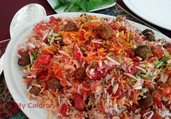 Posted: 13 August 2019 Filed under: Sour cherries-mixed rice | Tags: meatballs, shiraz, sour cherries Leave a commentFresh sour cherries are really hard to find in my city Montreal. This year however I was lucky enough to get my hands on a sour cherry farm in the suburb and hand pick them for one of my favorite Persian dishes of all times: albaloo polow, آلبالو پلو a beautiful summary rice mixed with tasty meatballs, sweetened sour cherries and topped with silvered pistachio and almond.