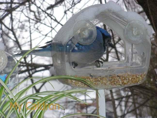 The tree embodies as many seasons as Montreal has to offer: short-lived purple blossoms; dense long lasting green leaves; colorful falling leaves; and snow covered bare branches, at times decorated with long icicles, in the whole duration of our long winters. I guess my kitchen’s window is partly responsible for my cooking passion! What makes spending time in the kitchen all more enjoyable however is the bird feeder I bought a couple of years ago. It feeds many birds and it creates a world around it which feeds my soul as well.