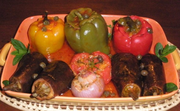 Posted: 4 October 2011 Filed under: KITCHEN, for recipes, Stuffed vegetables (dolmeh1), Uncategorized | Tags: booteh_recipes, dolmeh, Persian_cuisine, stuffed_vegetables 1 CommentBasically, any vegetable that can be filled (eggplants, bell peppers, tomatoes, squash, onions) or can be wrapped (grape leaf, cabbage) with specific filling makes the gorgeous looking and savory dolmeh. This dish is not specific to Iran, but Iranians have their own ways of preparing it.