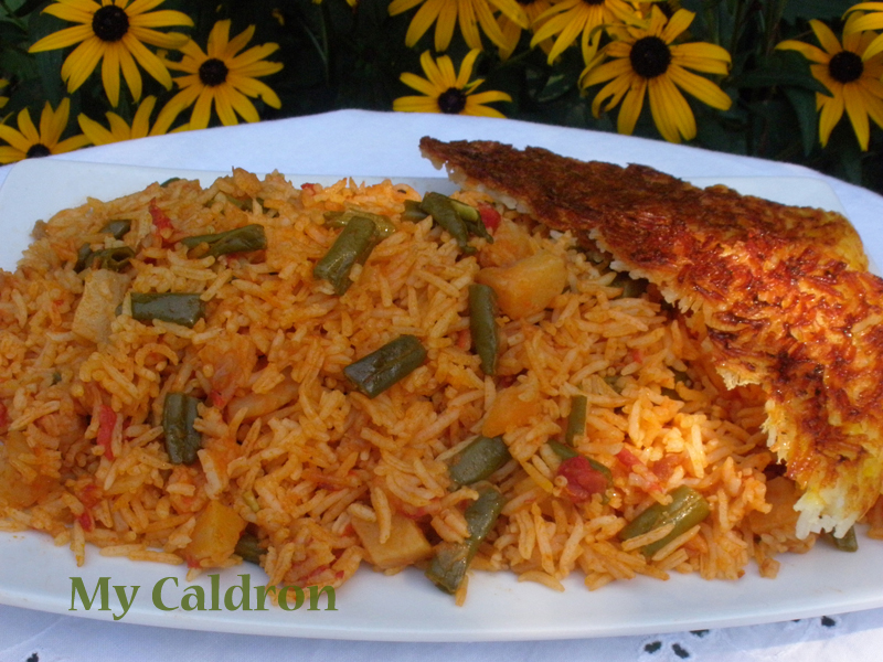 Green Beans mixed rice (Loobia Polow, vegetarian version)