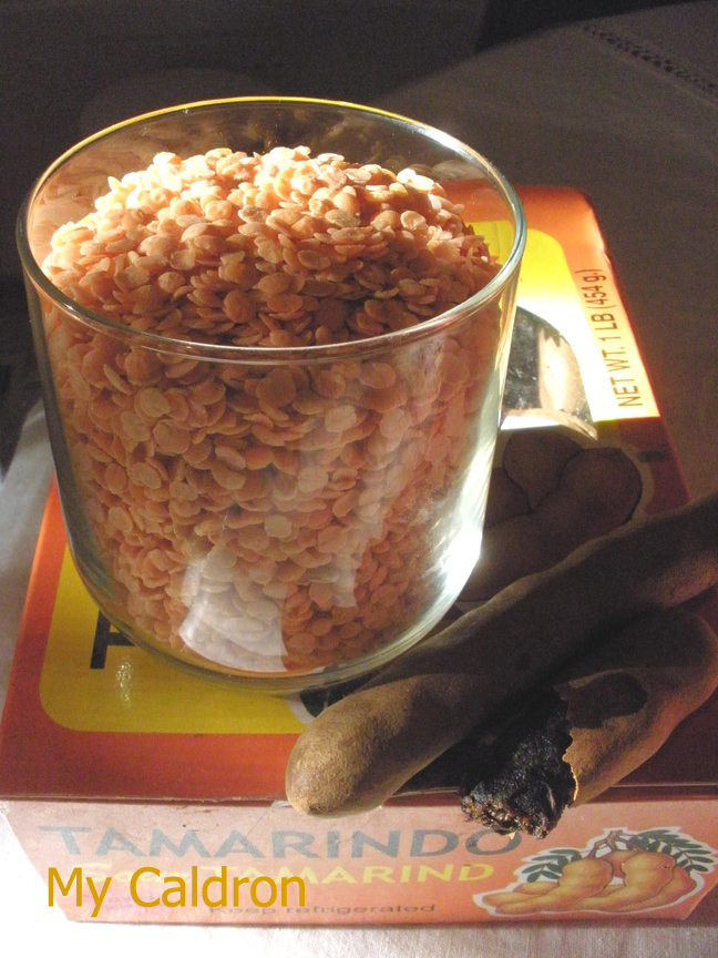 Note: I buy fresh tamarind from Middle Eastern stores; they taste wonderful (more sour than sweet) and are very rich. For this recipe, I use one long pod, skin and soak it in 2-3 tbsp of hot water. After 15 minutes, I just squeeze the pod and use the extracted juice for my daal stew.